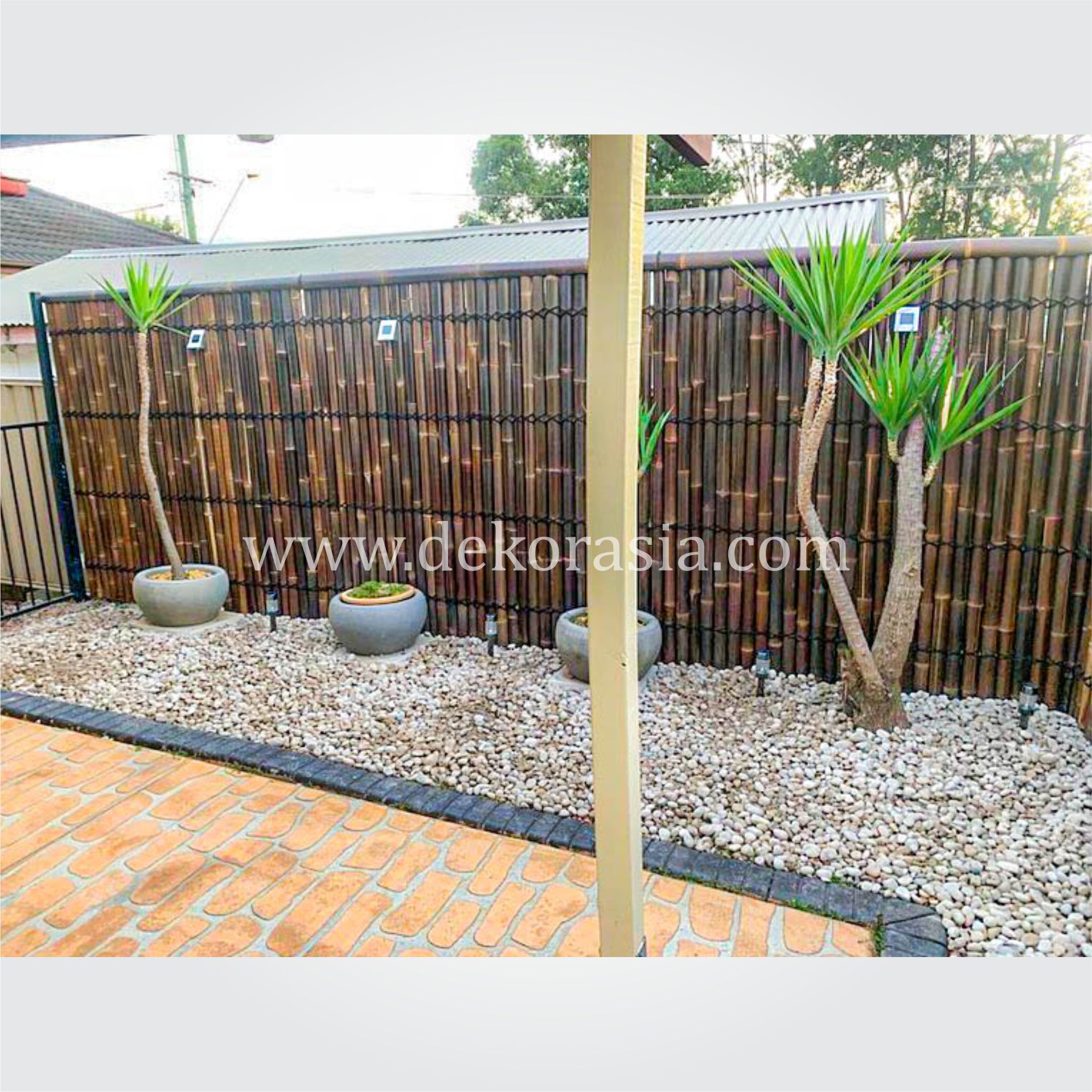 Half Cut Black Bamboo Fence 2 Back Slats Black Coco Rope